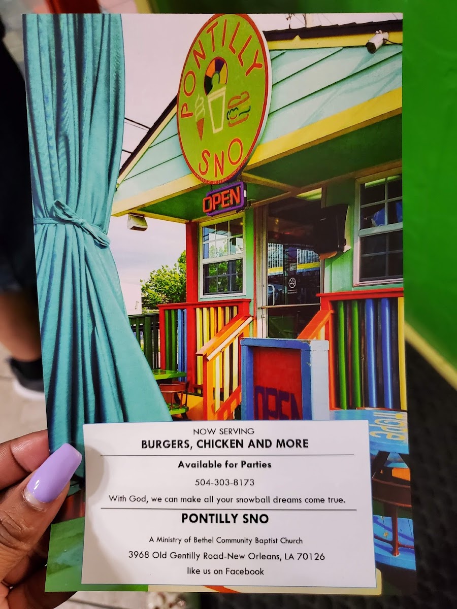 Welcome to Pontilly Sno, a delightful culinary gem nestled in New Orleans, LA. This unique establishment specializes in snoballs, shaved ice, and an enticing menu that includes mouthwatering burgers and flavorful fish dishes. The atmosphere is infused with positivity, thanks to its Christian-based decor and uplifting music that envelops guests in a warm embrace.